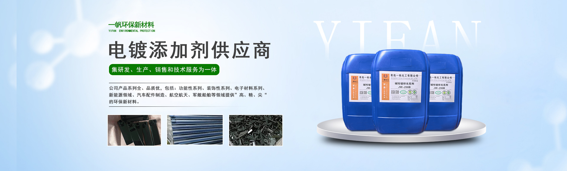 青島一帆環(huán)保新材料有限公司主營酸鋅載體、堿鋅中間體等一站式電鍍添加劑服務商!
